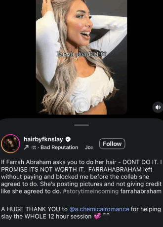According to the “hairbyfknslay” Instagram account, Farrah didn’t pay for the services rendered by the hair salon.