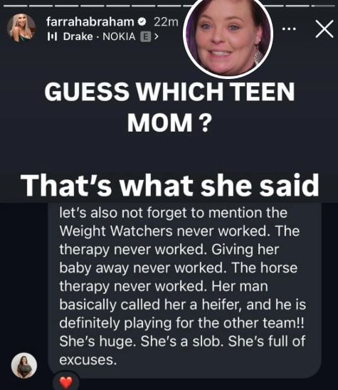 “The therapy never worked. The horse therapy never worked. Her man basically called her a heifer..” Farrah posted to her Instagram stories.