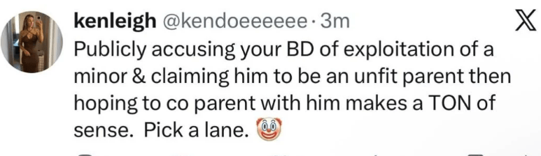 David Eason’s ex girlfriend Kenleigh slammed Jenelle on Twitter (X).